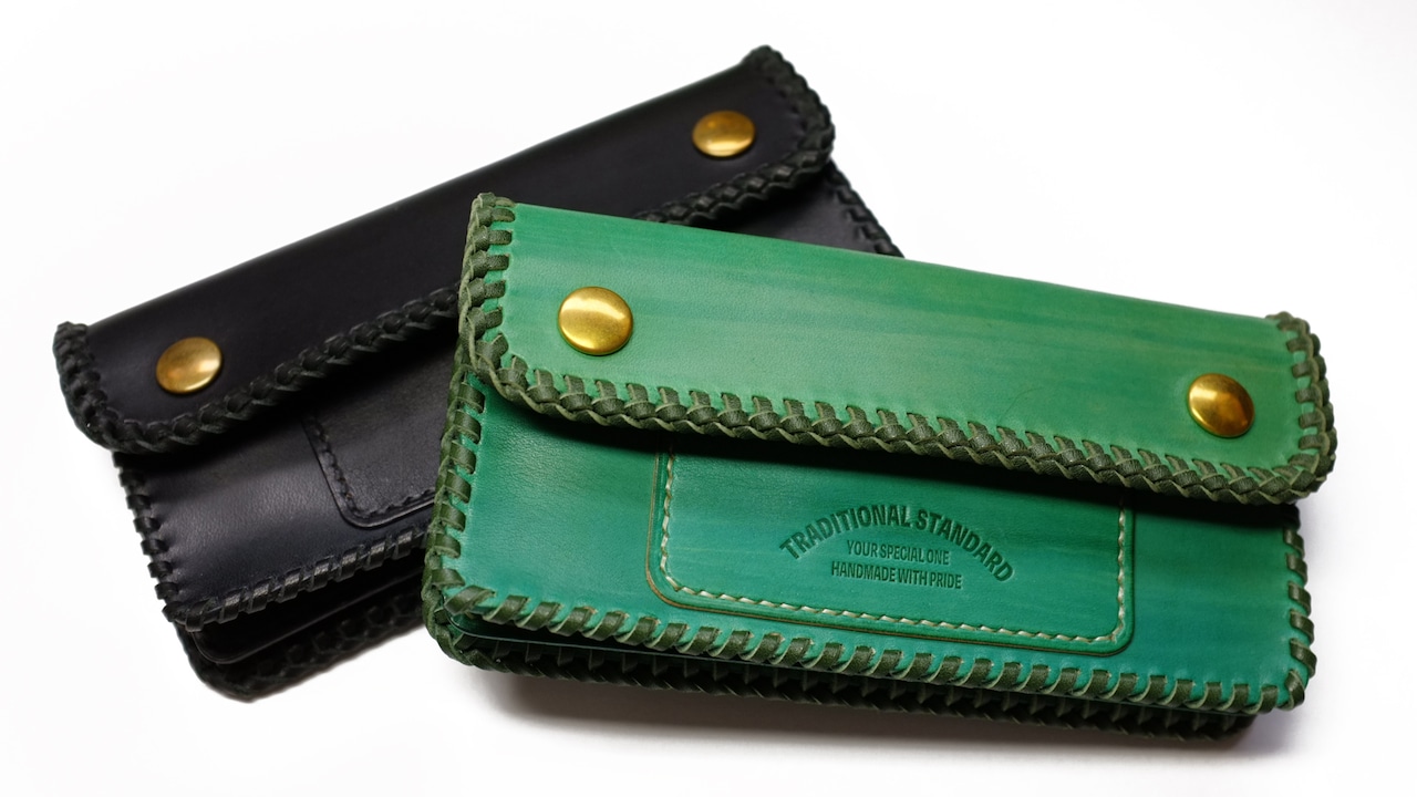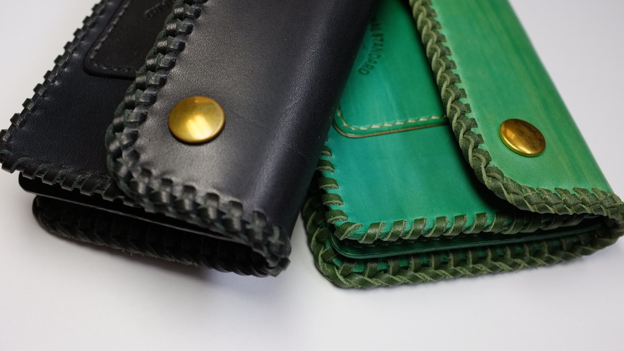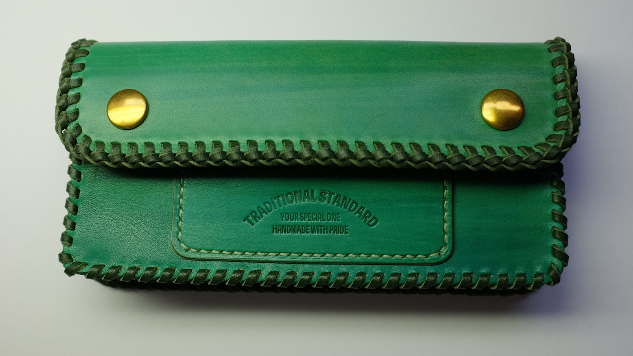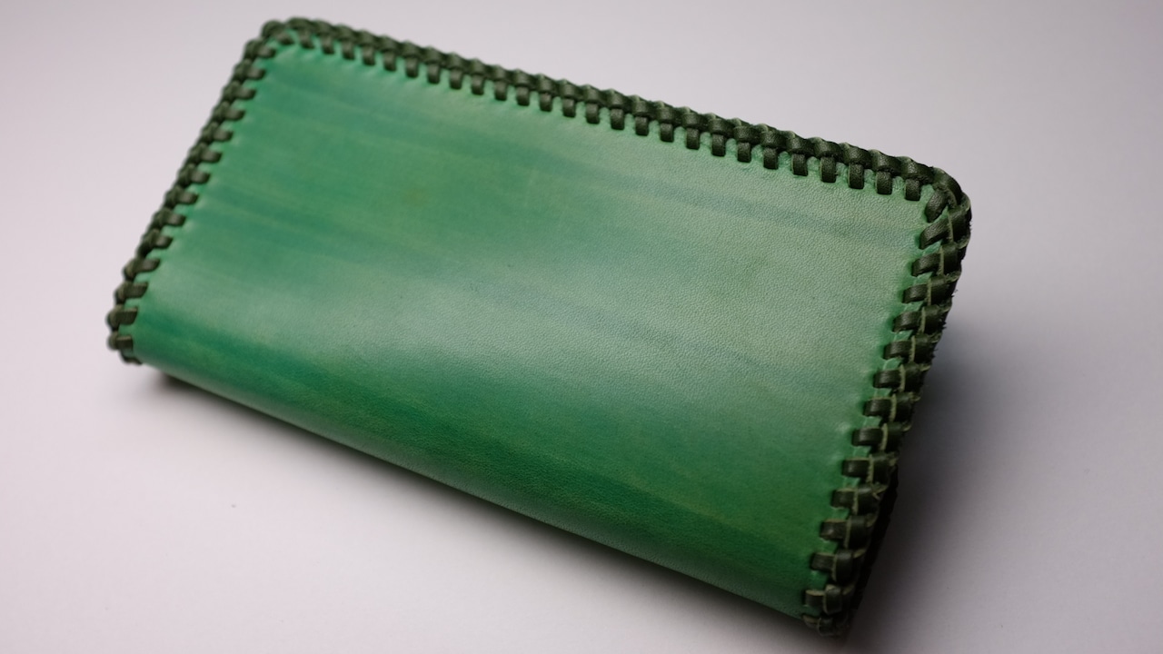 革表面のみを手染めしていますので使い込むにつれて