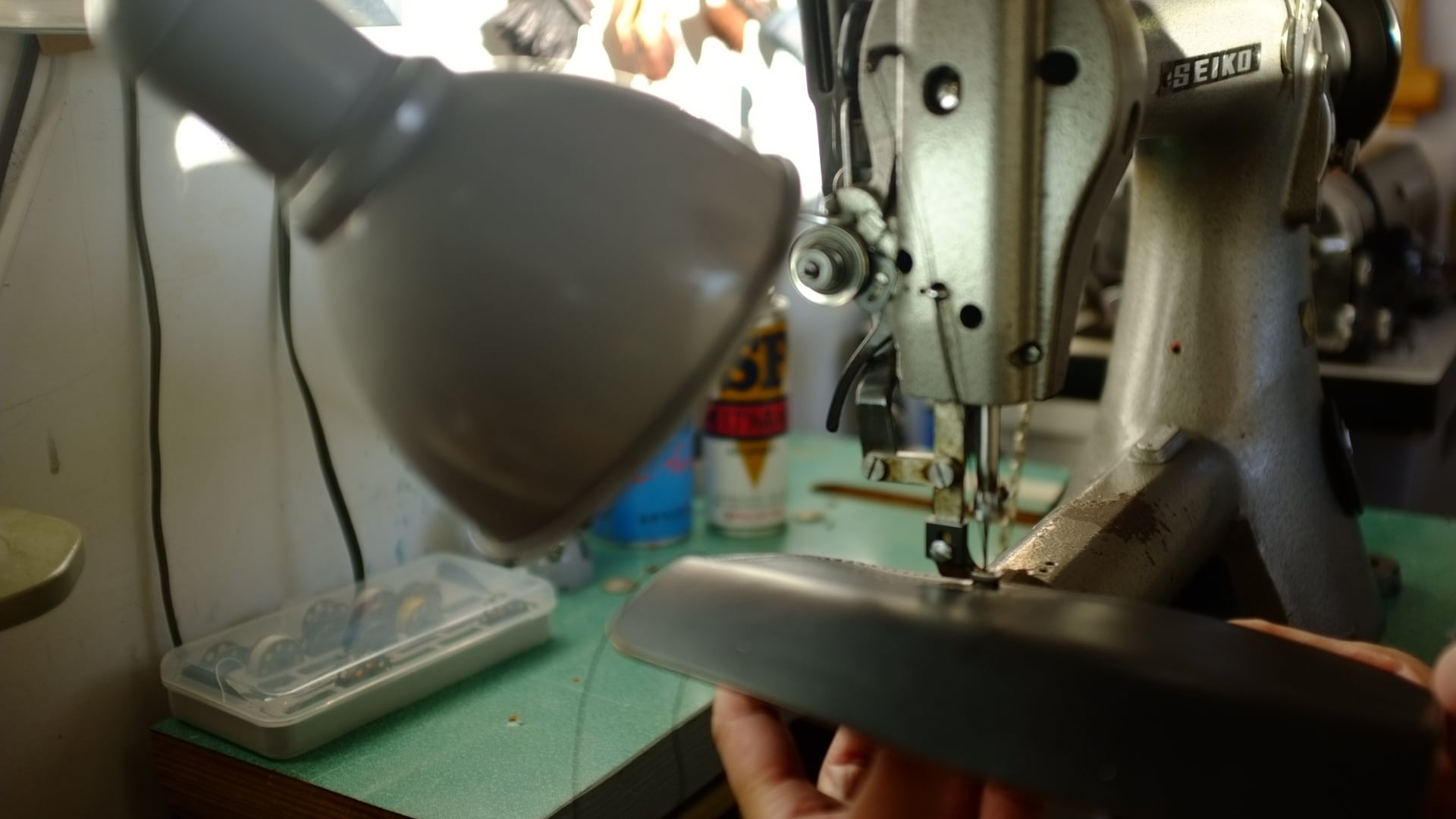 旧い半回転釜のミシンでザックリと無骨に縫い上げました。