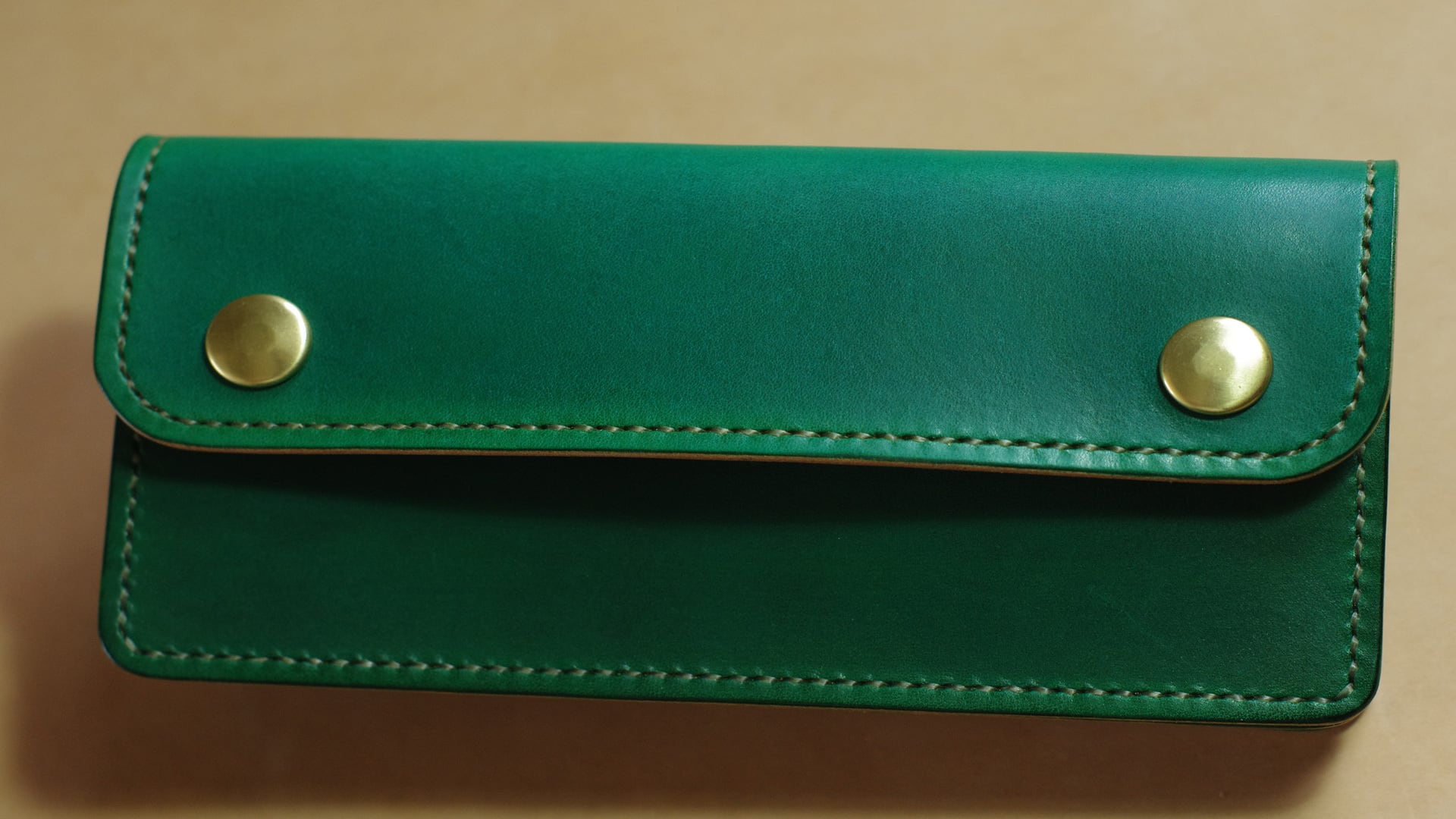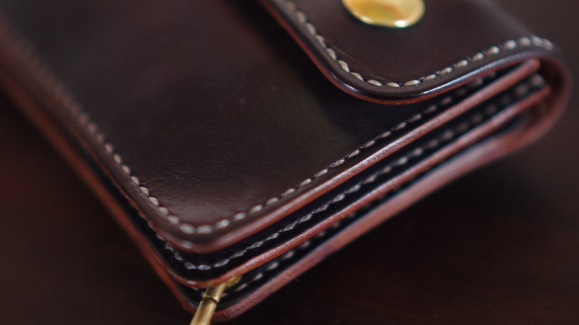 牛ヌメ革をシニュー糸で丁寧に手縫いで縫い上げました