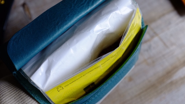 シボのあるITALYレザーで制作したシャグポーチ。